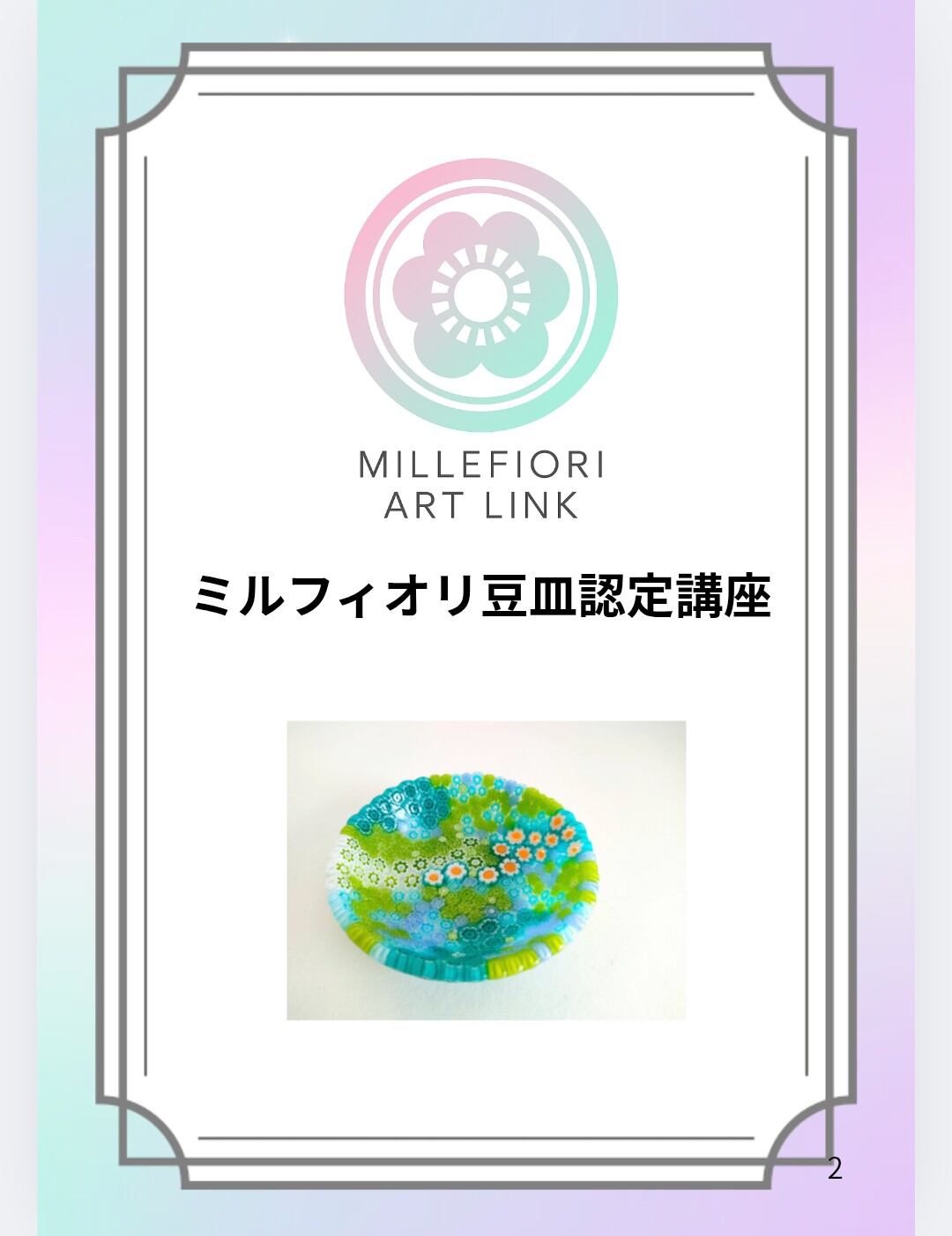ミルフィオリ豆皿認定講座のテキストとディプロマのセットです。